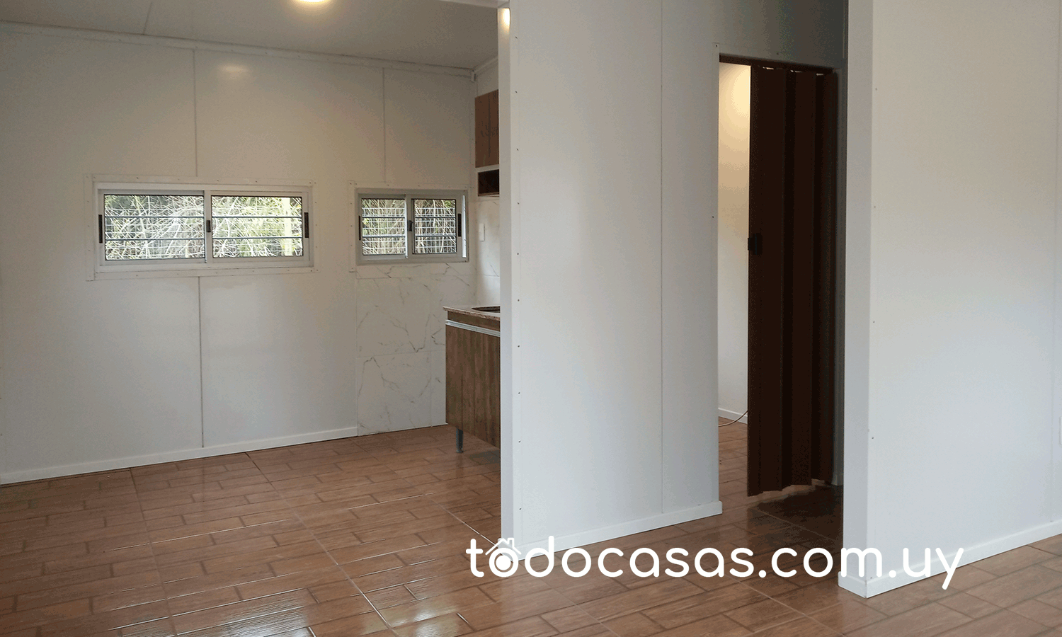 Casa de 54m2 con 2 dormitorios, estar, cocina integrada, lavadero y baño completo.