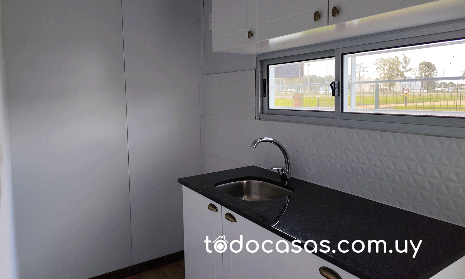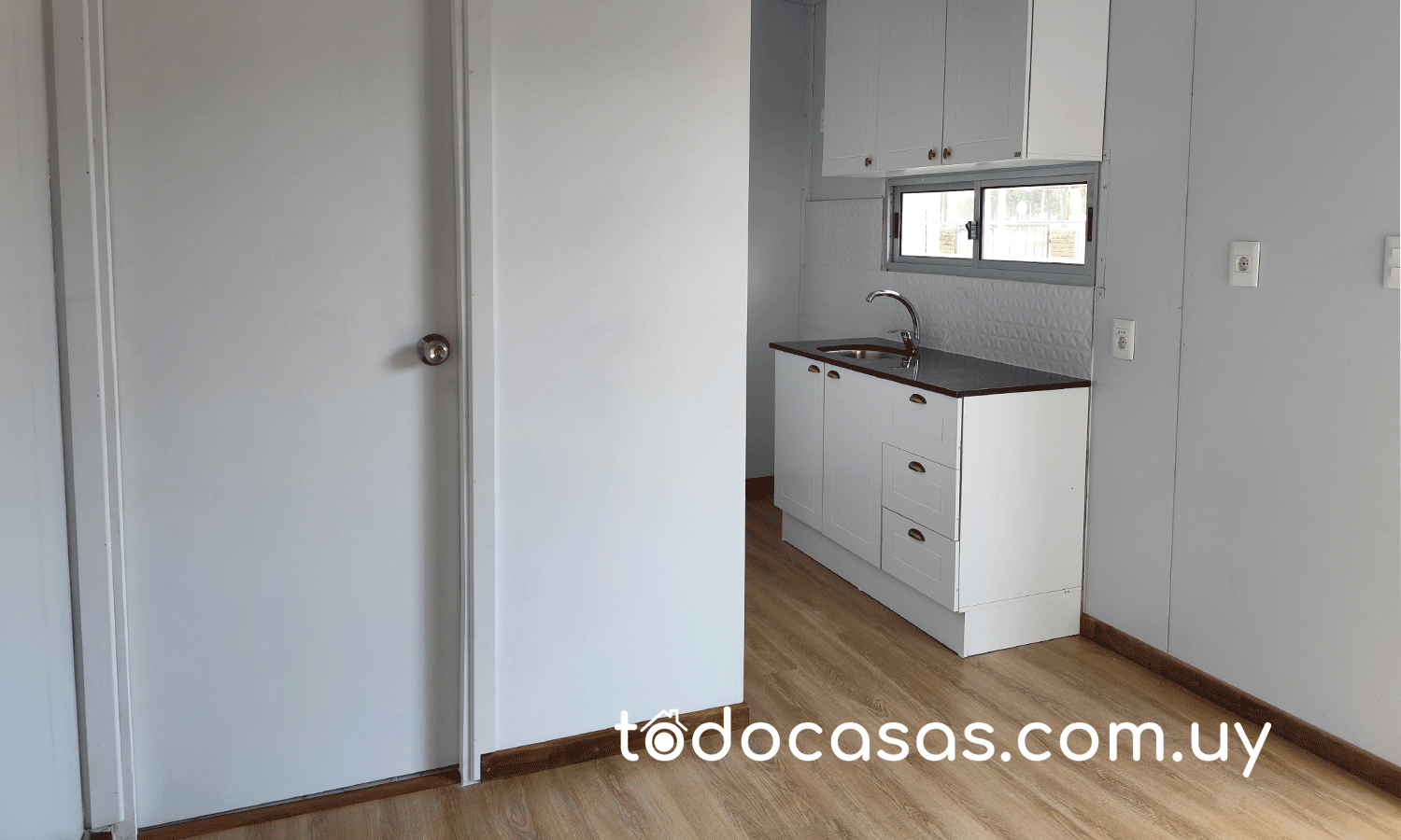 Casa monoambiente de 21m2 con cocina integrada y baño completo.  Medidas 7m x 3m.