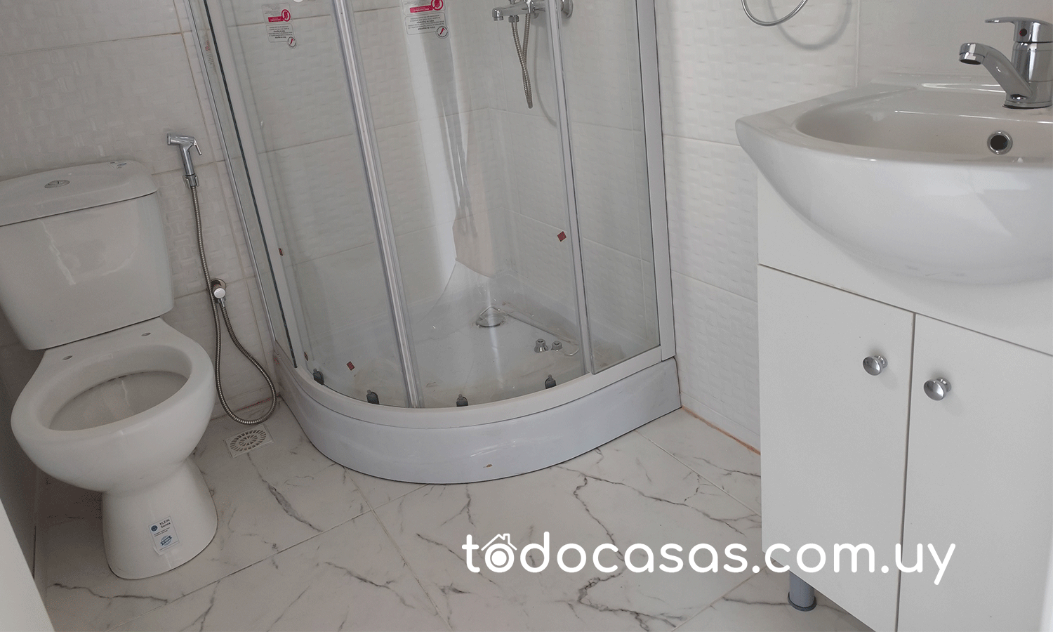• baño: cerámica en paredes y piso, inodoro, ducha higiénica, lavatorio flotante, ducha tipo cabina